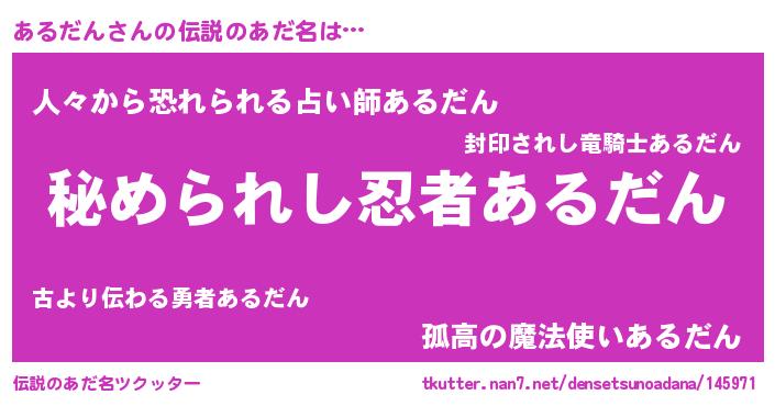 | 男性向けラノベタイトル風あだ名 | 『緋弾のアルダン』 |