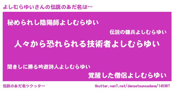 | 意味不明あだ名 | 『自称よしむらゆい』 |