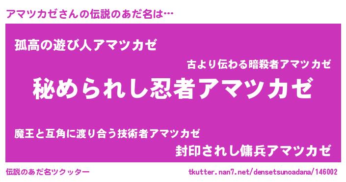 | ファンタジー風あだ名 | 『エターナルアマツカゼー』『アマフェル』 |