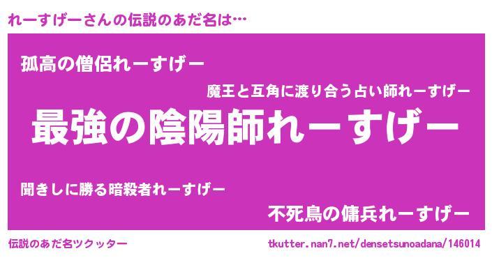 | 意味不明あだ名 | 『れーすげーフォーエバー』 |