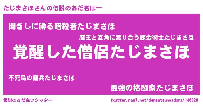 | ヒーロー風カッコイイあだ名 | 『天弓騎士タジ』『ネオタジマサホ』 |
