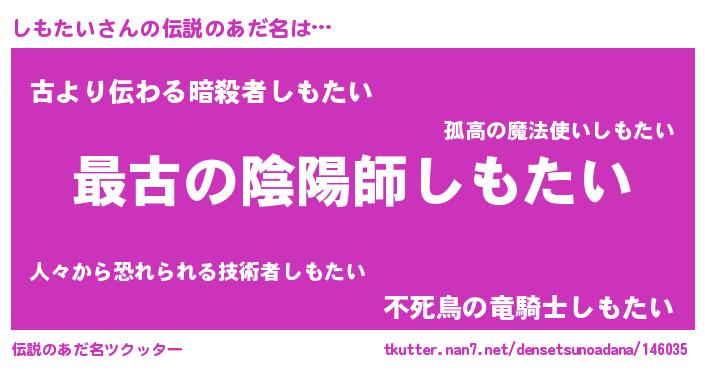 | ヒーロー風カッコイイあだ名 | 『ウルトラしもたいマン』『ネオシモタイ』 |