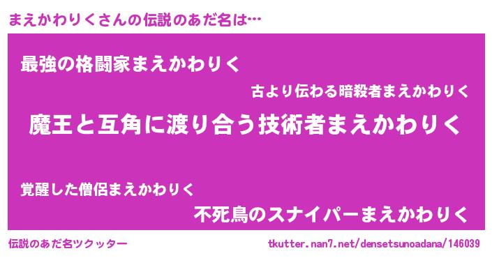| ヒーロー風カッコイイあだ名 | 『友情の使者まえかわりく』 |