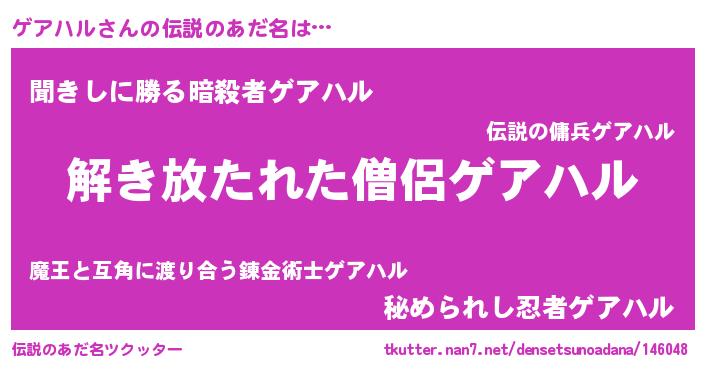| 意味不明あだ名 | 『住所不定無職ゲアハル(14歳)』 |