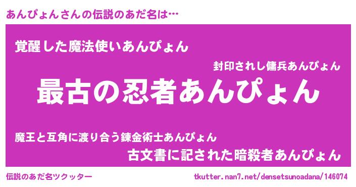 | 意味不明あだ名 | 『あんぴょんフォーエバー』 |