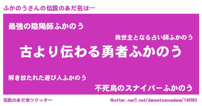| ヘコむあだ名 | 『ふかのう(震え声)』『豆乳』 |