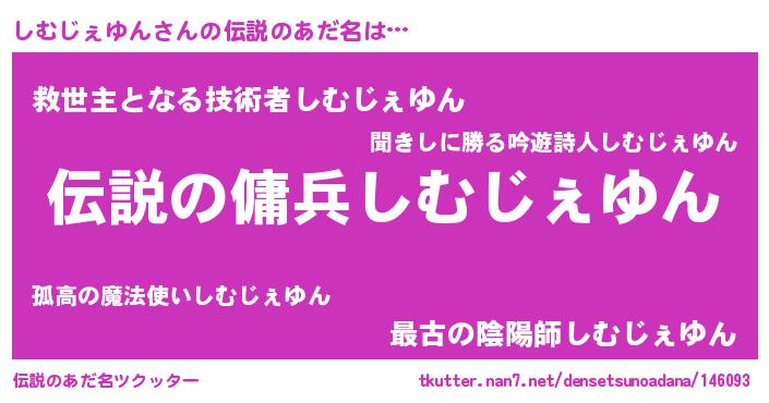 | 男性向けラノベタイトル風あだ名 | 『しむじぇゆんの憂鬱』 |