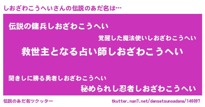 | ヒーロー風カッコイイあだ名 | 『慈愛の使者しおざわこうへい』 |