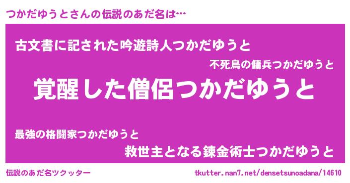 | 男性向けラノベタイトル風あだ名 | 『つかだゆうとに滅ぼされるだけの簡単なお仕事です』 |