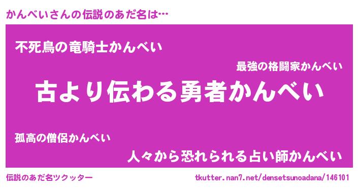 | 意味不明あだ名 | 『永久保存かんべい』『ペロリンかんべい』 |