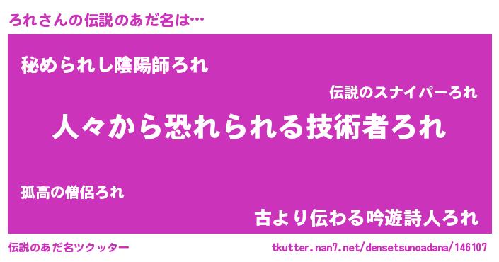 | 男性向けラノベタイトル風あだ名 | 『緋弾のロレ』『転生したらろれだった件』 |