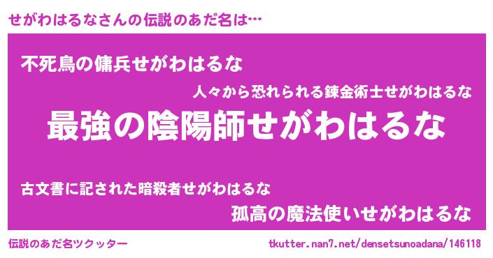 | 意味不明あだ名 | 『住所不定無職せがわはるな(81歳)』 |