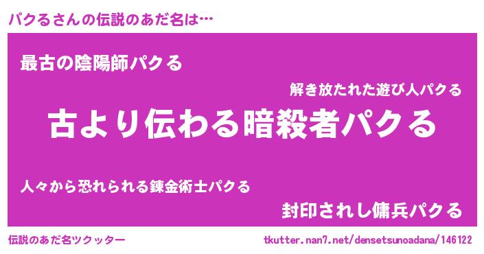| ヒーロー風カッコイイあだ名 | 『ネオパクル』『ウルトラパクるマン』 |