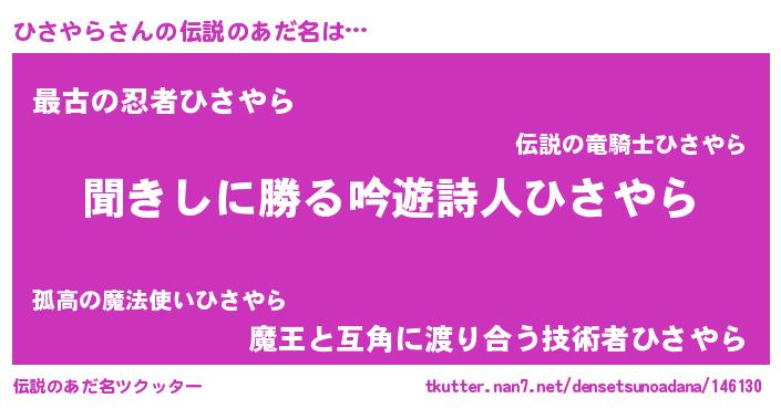 | 男性向けラノベタイトル風あだ名 | 『ひさやらという概念が存在しない退屈な世界 』 |