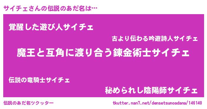 | 女子向けラノベタイトル風あだ名 | 『サイチェ恋絵巻』『サイチェ様がみてる』 |