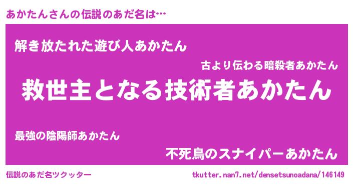 | 意味不明あだ名 | 『眠気覚ましガムあかたん味』 |