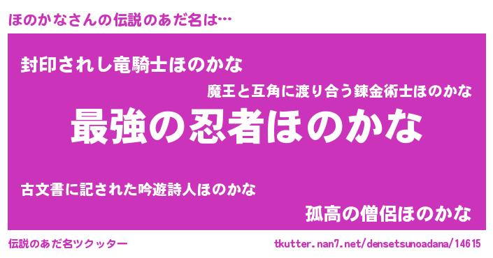 | ファンタジー風あだ名 | 『エターナルホノカナー』『ゼホノトゥ』 |