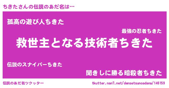 | 男性向けラノベタイトル風あだ名 | 『ちきたに滅ぼされるだけの簡単なお仕事です』 |
