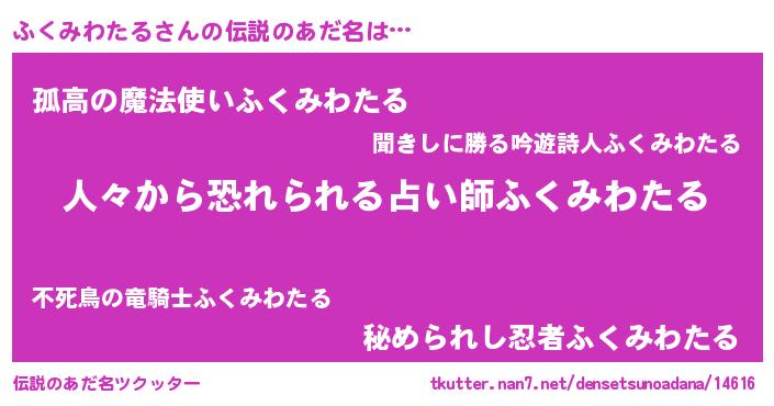 | ヒーロー風カッコイイあだ名 | 『正義の使者ふくみわたる』 |