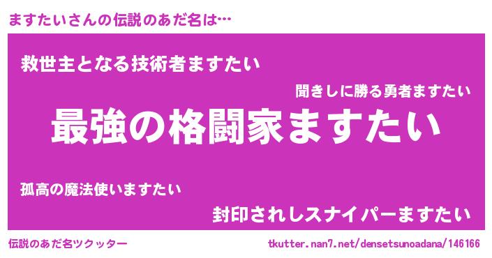 | 意味不明あだ名 | 『住所不定無職ますたい(5歳)』 |