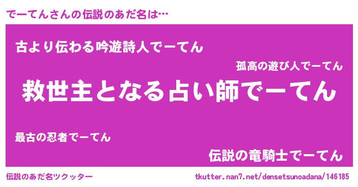 | ヒーロー風カッコイイあだ名 | 『最強戦士デーテン』『愛の使者でーてん』 |