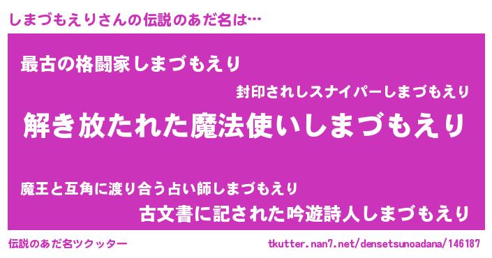 | 胡散臭い通販商品みたいなあだ名 | 『伝統あるサプリメント…その名も「しまづもえり」』 |