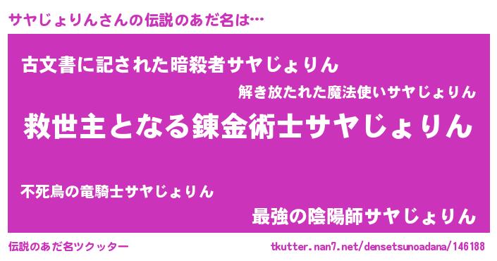 | 男性向けラノベタイトル風あだ名 | 『ノーゲーム・ノーサヤジョリン』 |