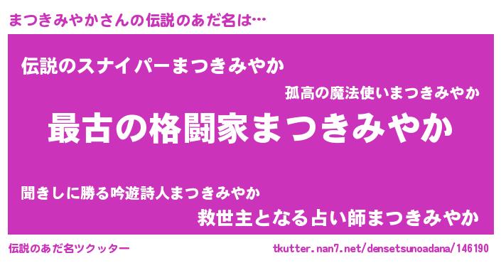 | 肩書あだ名 | 『まつきみやか総理大臣』 |