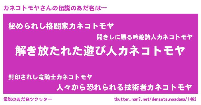 | ヒーロー風カッコイイあだ名 | 『銀牙騎士カネ』『ネオカネコトモヤ』 |