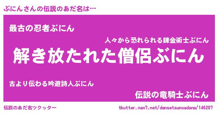 | 男性向けラノベタイトル風あだ名 | 『この素晴らしい世界にぶにんを!』 |