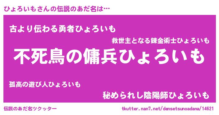 | 2回繰り返すあだ名 | 『ひょひょ』『つかつか』『ひひょょ』 |