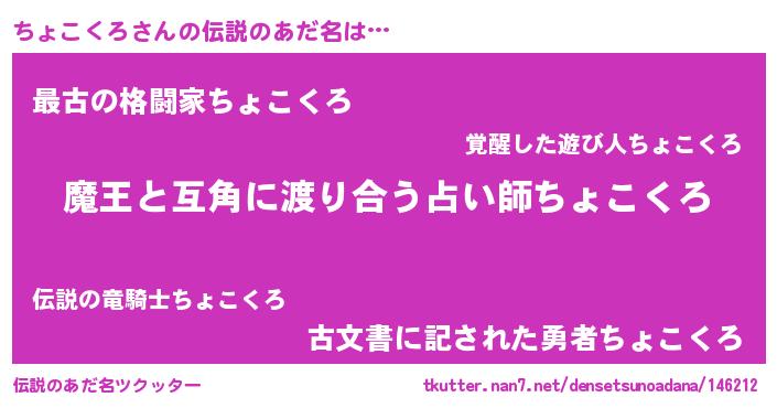 男性向けラノベタイトル風あだ名 | 『おまえをオタクにしてやるから、俺をちょこくろにしてくれ! 』 |