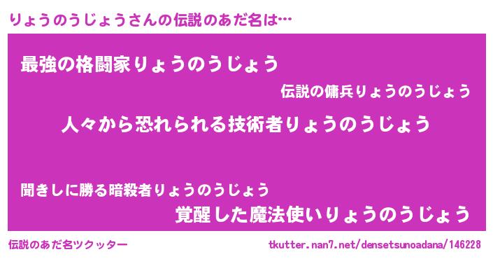 | ヒーロー風カッコイイあだ名 | 『正義の使者りょうのうじょう』 |