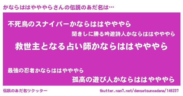 | ヒーロー風カッコイイあだ名 | 『天空の使者かならははやややら』 |