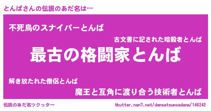 | 男性向けラノベタイトル風あだ名 | 『とんばに滅ぼされるだけの簡単なお仕事です』 |
