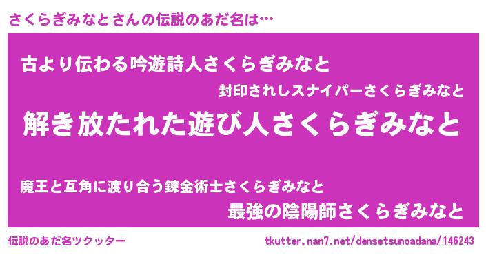 | ヘコむあだ名 | 『さくぷりん』『さくらぎみなと(小並感)』 |