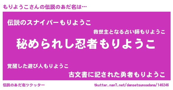 | ファンタジー風あだ名 | 『ゼモリトゥ』『エターナルモリヨウコー』 |