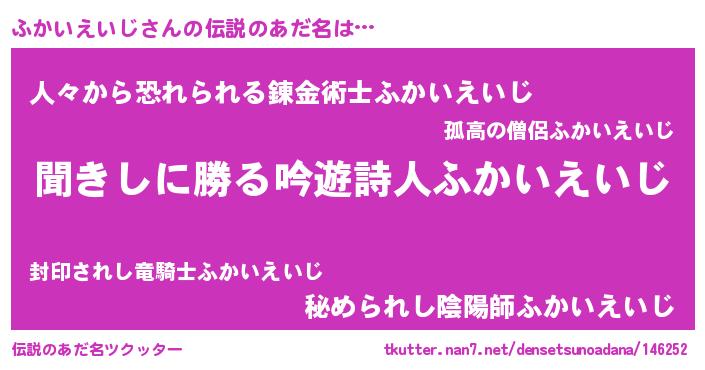 | 意味不明あだ名 | 『住所不定無職ふかいえいじ(6歳)』 |