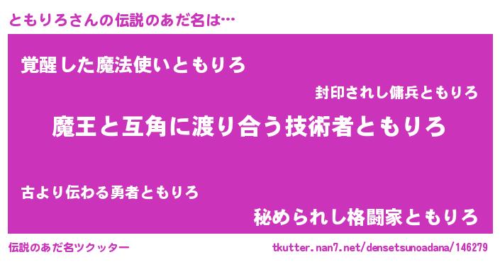 | ヒーロー風カッコイイあだ名 | 『愛の使者ともりろ』『究極戦士トモリロ』 |