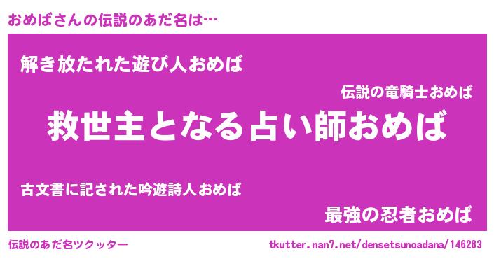 | ヒーロー風カッコイイあだ名 | 『天空の使者おめば』『幻影騎士オメ』 |
