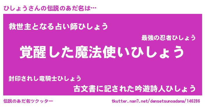 | ヒーロー風カッコイイあだ名 | 『天弓騎士ヒシ』『ウルトラ戦士ヒショウ』 |
