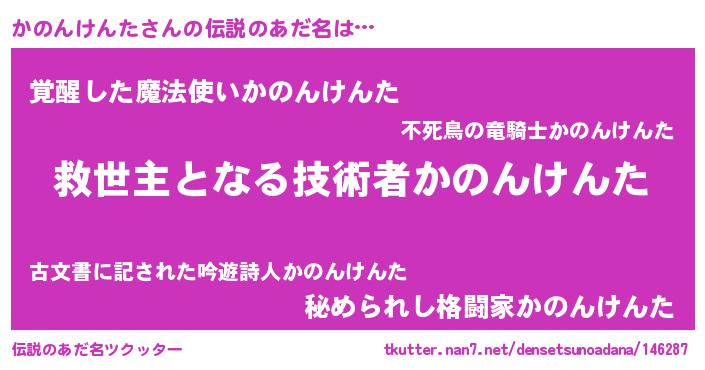 | 意味不明あだ名 | 『住所不定無職かのんけんた(4歳)』 |