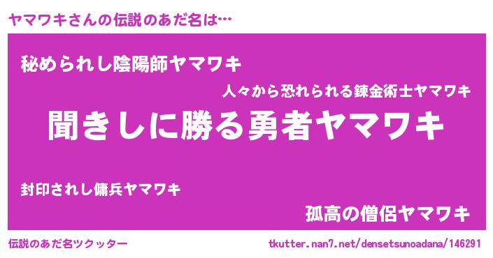 | 男性向けラノベタイトル風あだ名 | 『ヤマワキという概念が存在しない退屈な世界 』 |