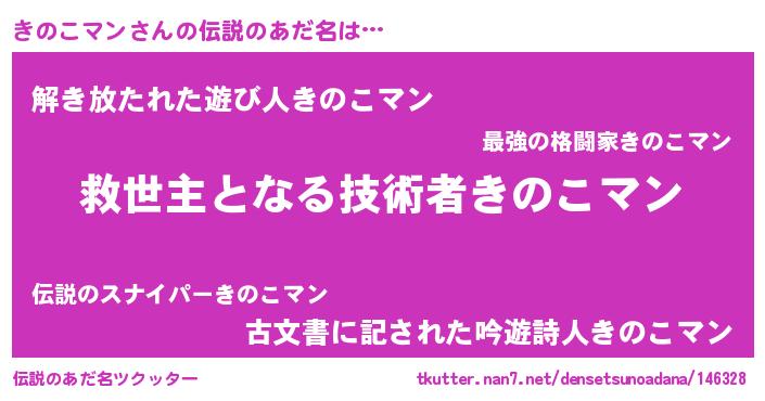 | 男性向けラノベタイトル風あだ名 | 『ノーゲーム・ノーキノコマン』 |