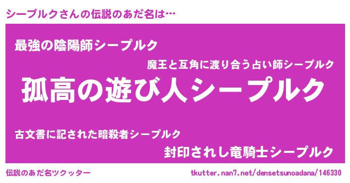 | 胡散臭い通販商品みたいなあだ名 | 『信頼と実績のペンダント…その名も「シープルク」』 |