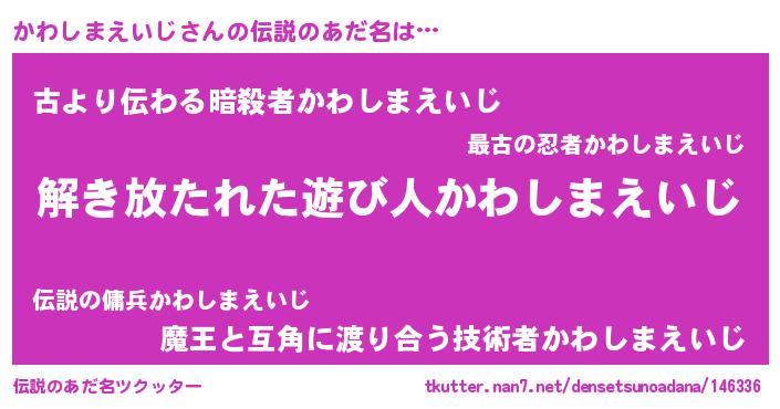 | ヒーロー風カッコイイあだ名 | 『魔戒騎士カワ』『ネオカワシマエイジ』 |