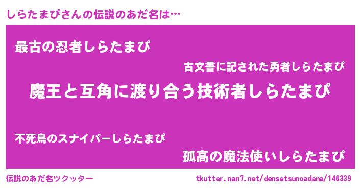| 男性向けラノベタイトル風あだ名 | 『転生したらしらたまぴだった件』 |