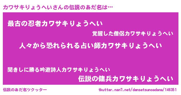 | 男性向けラノベタイトル風あだ名 | 『カワサキリョウヘイスレイヤー』 |