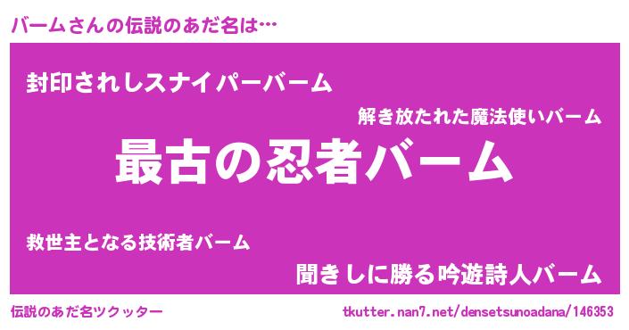 | ヒーロー風カッコイイあだ名 | 『ウルトラバームマン』『スーパーバーム』 |