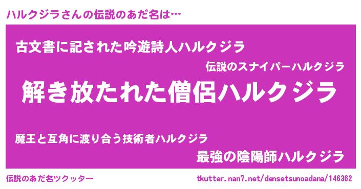 | 男性向けラノベタイトル風あだ名 | 『ハルクジラに滅ぼされるだけの簡単なお仕事です』 |